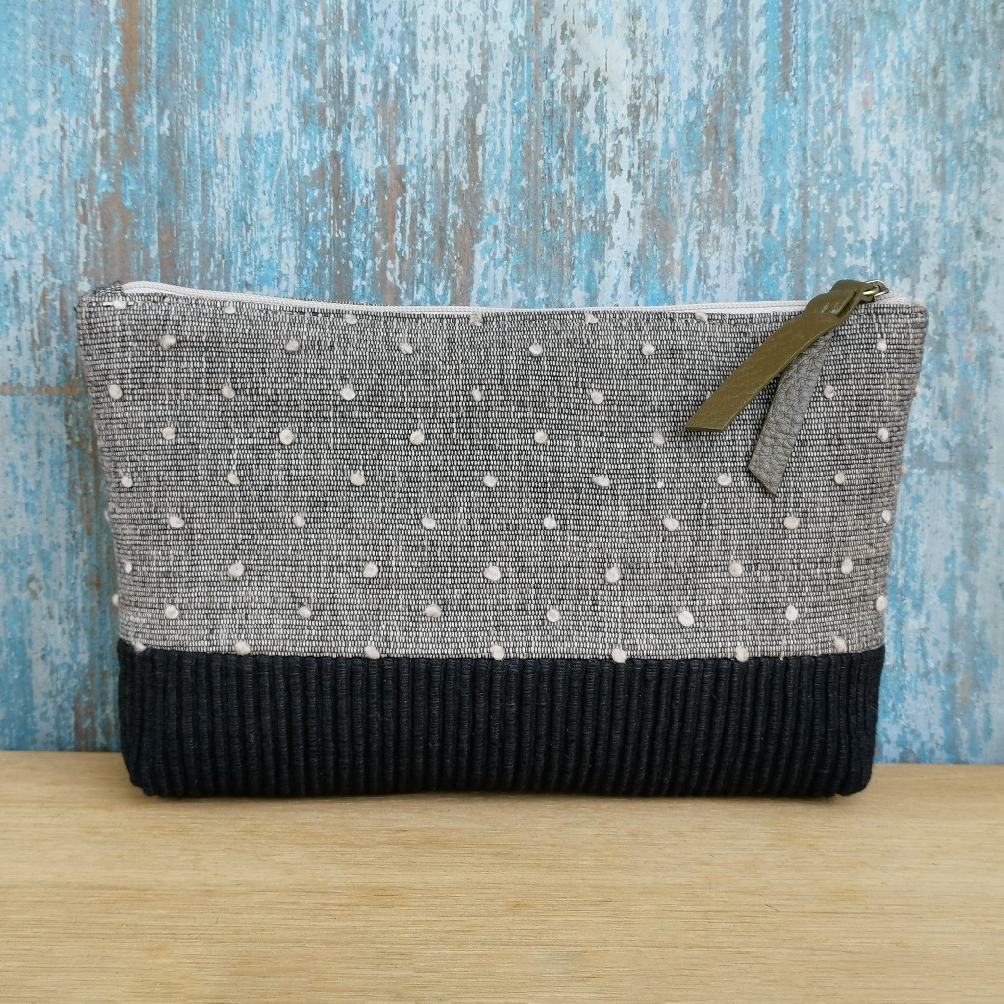 Accessory bag made from a hand-woven textile composed of cotton. Perfect for cosmetic items or to give as a gift.