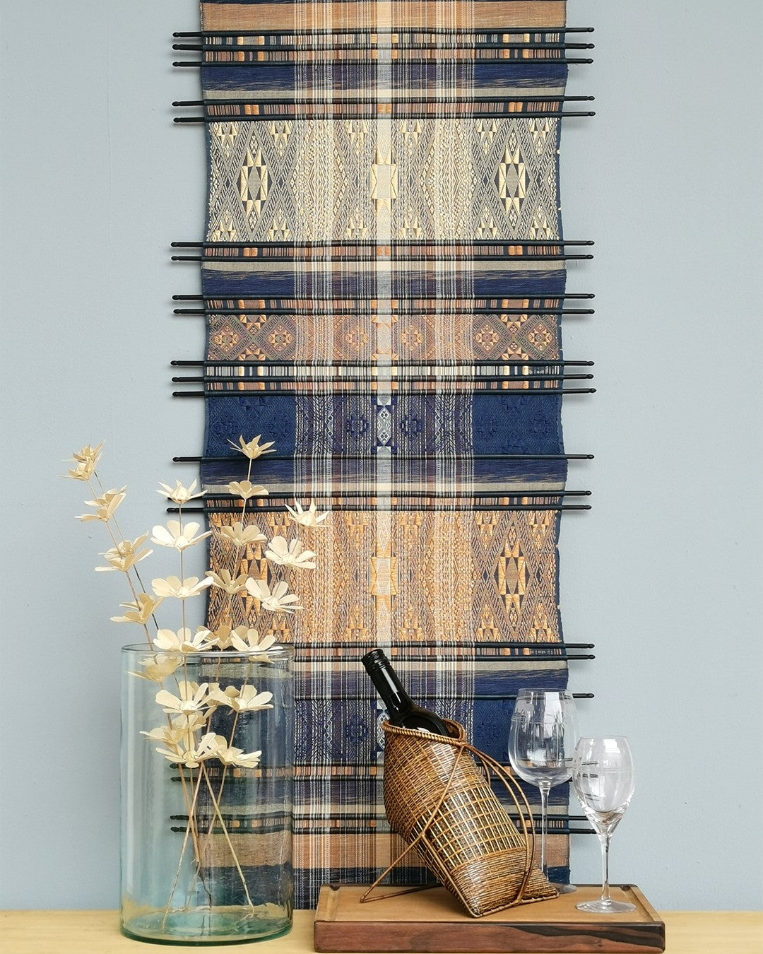 Sop Moei Arts wall hangings are inspired by the Thai "Pha tung" which are woven banners that often hang in temple grounds on religious or festive occasions. Our wall hangings are a contemporary interpretation of this art form and designed for modern interiors. A truly stunning woven art piece to hang in your home, office or give as a unique gift.