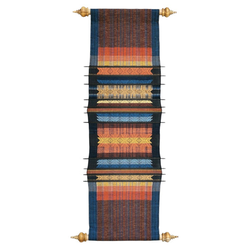 Hand-woven art pieces.  Our wall hangings are inspired by the Thai "Pha tung" which are woven banners that often hang in temple grounds on religious or festive occasions.  Our wall hangings are a contemporary interpretation of this art form and designed for modern interiors.